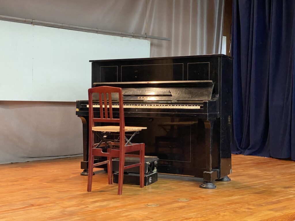 これまでも何回か開催してきたミニ演奏会を、今回は近所の公民館を借りて開催しました。自治会長さんのご厚意でピアノを設置させていただけることになり、アップライトピアノを軽トラックに載せて搬入しました。重いピアノを運ぶ作業にご協力いただいたお父様方、ありがとうございました!